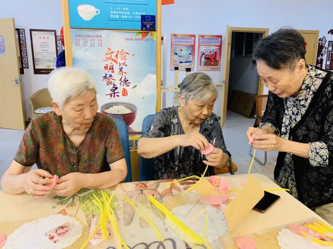“五月五,過端午,劃龍舟,敲鑼鼓”伴隨著童謠的響起,養(yǎng)老中心拉開了端午活動的序幕,老人們在主持人的指導(dǎo)下紛紛做起手工玫瑰。